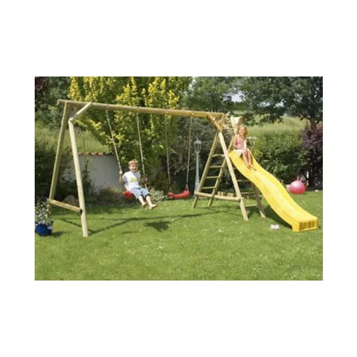 Balançoire portique bois Antoni complet avec 1 toboggan blue, 2 balançoires, 4 crochets, 4 ancres, fixationProduct attributes